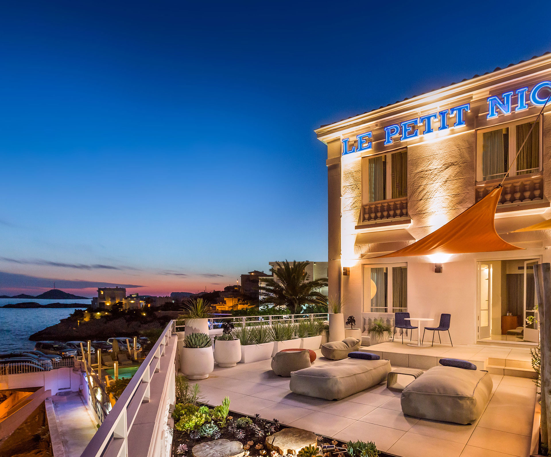 “100 km from noise, five minutes from the centre”, as my grandfather who established Le Petit Nice used to say, it’s a hidden setting by the sea.